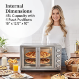 Introducing the Elite Gourmet Double Door countertop oven, The perfect stand-in or supplement to conventional ovens. This dual door Rotisserie and convection oven will have you forget about your traditional oven altogether! Toast, bake, broil, and Rotisserie your way to delicious, hearty meals and decadent desserts – this oven can do it all! The spacious interior boasts 4 rack positions so you can bake 2 x 12″ Pizzas, warm dinner rolls, and broil a casserole all at the same time! With heating elements on top and bottom that can be independently turned on using the separate temperature dials, a 60-minute timer, and a function dial, This oven really has the versatility you’ve been waiting for. Includes French-style doors, an interior light, 2 x wire racks, 1 enamel bake tray, a tray handle, Rotisserie set and handle and a crumb tray. Removable parts are all dishwasher safe. Avoid heating up your kitchen with a big conventional oven, save time and use less energy with the Elite Gourmet Double Door countertop oven, The perfect supplement for the holidays when your kitchen needs goes on double duty!