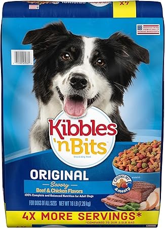 The new kibble blend of Kibbles ‘n Bits Original dry dog food features the same variety of tastes and textures that gets tails wagging! This antioxidant-rich, healthy dog food contains high-quality ingredients including vegetables and 23 essential vitamins & minerals. And it has the signature mix of crunchy kibble and meaty bits, making a delicious meal with complete and balanced nutrition that you can feel good about serving every day!
