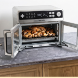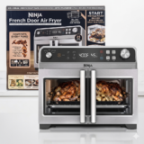 The Ninja® French Door Premier 3-in-1 Air Fryer, Convection Oven, and Toaster delivers the largest air fry capacity in a French door design, combining premium style with powerful performance. Using 450°F cyclonic air, it cooks up to 60% faster than conventional ovens and with up to 75% less fat than traditional frying, while ensuring crispy, even resultsno rotating required. With 10-in-1 versatility for meals, snacks, and entertainment; included air basket and sheet pan that serve XL capacity; dishwasher-safe accessories; and a non-toxic cooking surface made without PFAS, this is the ultimate premium solution for family-sized cooking.