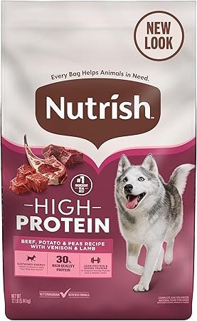 Fuel your dog’s adventures with Nutrish High Protein Beef, Potato & Peas Recipe with Venison & Lamb Dry Dog Food. Crafted for dogs of all ages and sizes, this high protein dog food recipe features real beef as the #1 ingredient and delivers 30% high-quality protein to help support lean muscle mass and healthy organs. It’s packed with 20% more protein than Nutrish Real Beef, Pea & Brown Rice Recipe, making it perfect for active pups. With lean protein and added Taurine, this beef dog food formula also helps support strong muscles and a healthy heart. Plus, every bag you buy helps support The Rachael Ray Foundation, giving back to animals in need. Order a bag of Nutrish dog food (formerly known as Rachael Ray Nutrish dry dog food) to treat your dog to the nutrition they deserve.